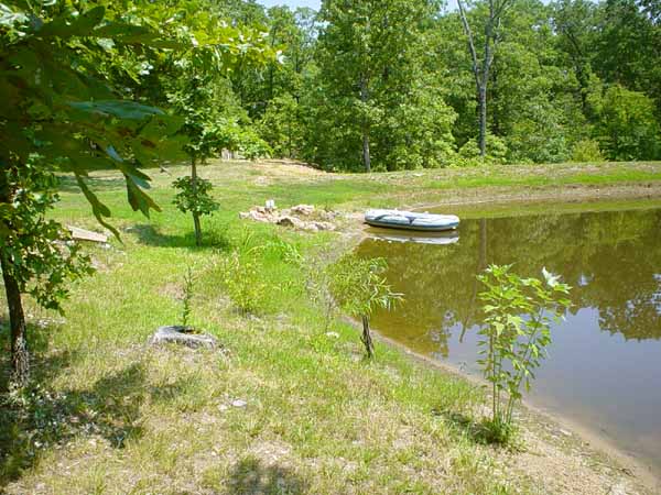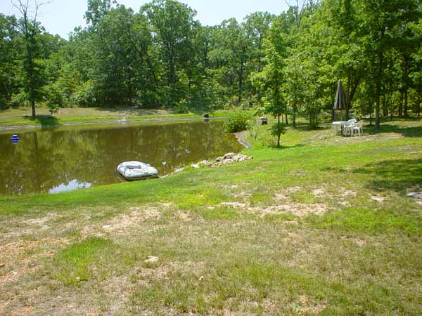 The water level in our pond is down also but fortunately, not as bad as most around the county. Ours is down a little over a foot. It is still almost 10 feet deep so the fish and turtles are doing just fine. The picture below shows what the pond looks like right now. The green grass tends to mask the water level drop. This picture is taken looking west along the north edge of the pond, the edge closest to the house. |