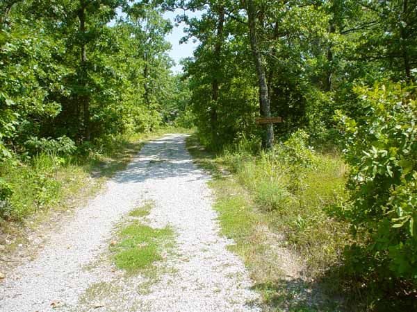 | As further evidence of how green it still is in the Ozarks, the photo below shows the view looking toward our house along the driveway. | |