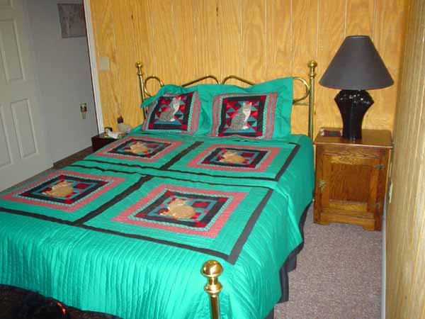 | The photo below was taken inside that bedroom, looking back toward the doorway. You may notice that the room's decorating theme carries through to the quilt on the bed. | |