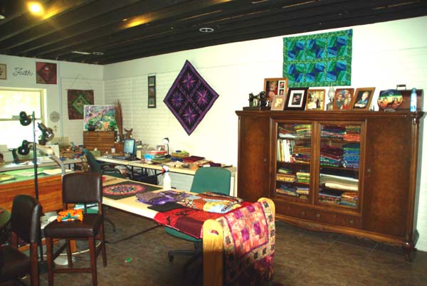 Faith has been busy with her quilting. The photo above shows her quilting corner in the basement. She has been producing some very nice quilts. This year some of her local quilting buddies talked her into entering some of her work in a national quilt show. She entered two of her recent quilts and both were selected for a year long tour of national and international quilt shows. Seeing as not many quilters receive the honor of ever having one of their quilts selected like that, having both entries selected is a big complement to Faith's work. You can see those two quilts in the photos below. |