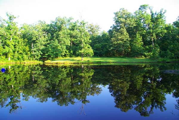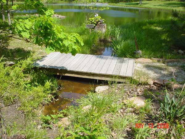 As you can see in the springtime photo above, the grass and foliage around the house and pond continues to improve. The mild winter allowed the grass to come out of hibernation sooner so my lawn mowing started early this year. That scum you see on the near side of the pond is simply tree pollen that is blown in on the breeze and collects on the water. It is not a problem except that it is a little sticky so gives you brown streaks if you swim around in it. It can make you look a bit dirty when you get out of the pond but it rinses off. The pollen scum disappears rapidly when it is windy or it rains. |