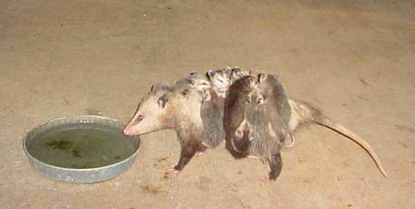 Momma Opossum moving her babies to a new den - just stopping by for a drink of water. |